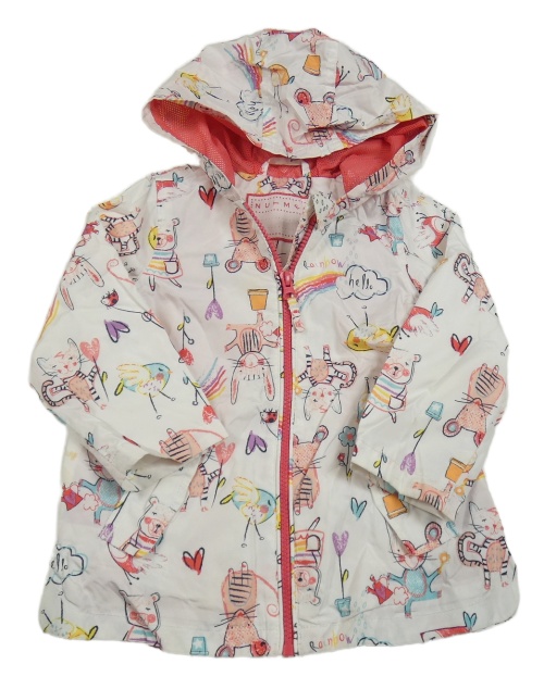 Bílá šusťáková jarní bunda se zvířaty a kapucí Nutmeg