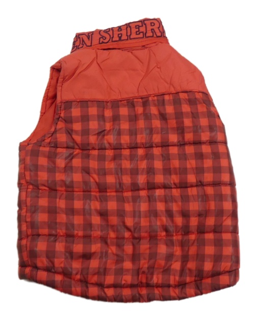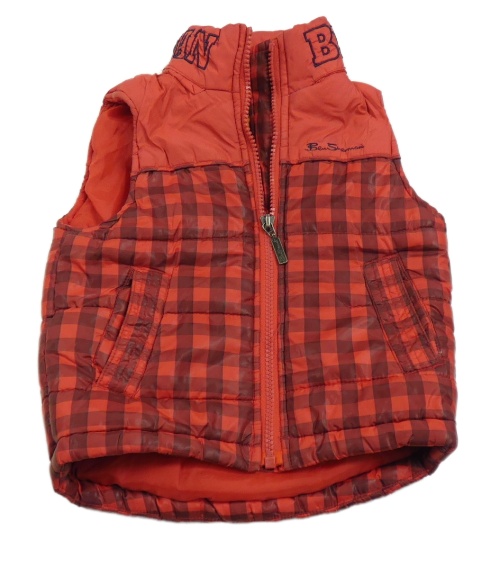 • Červeno-vínová kostkovaná prošívaná šusťáková zateplená vesta s logy a ukrývací kapucí Ben Sherman