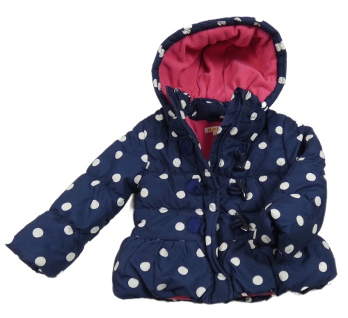 Tmavomodro-bílá puntíkatá prošívaná šusťáková zimní bunda s kapucí Bluezoo