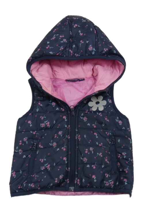 Tmavomodrá květovaná šusťáková zateplená vesta s kapucí Impidimpi