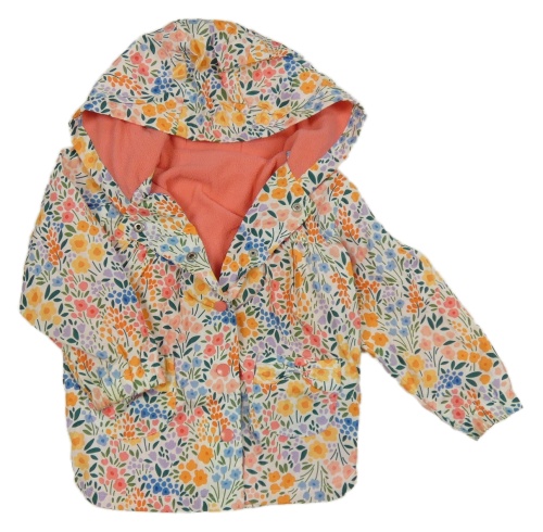 Bílá šusťáková jarní bunda s kytičkami a kapucí Dunnes