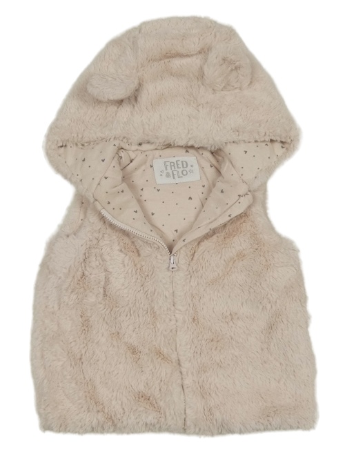 Světlerůžová kožešinová zateplená vesta s kapucí s oušky F&F