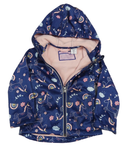 Tmavomodrá softshellová bunda s jednorožci a kapucí