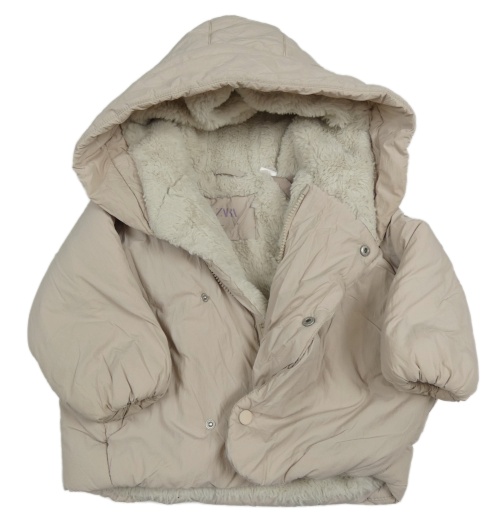 Pudrovobéžová šusťáková zimní bunda s kapucí ZARA