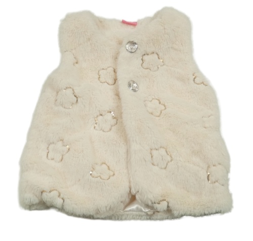Krémová kožešinová podšitá vesta s mraky z flitrů