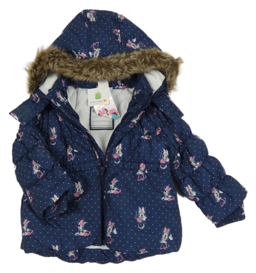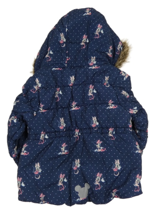 Nové - Tmavomodrá puntíkatá šusťáková zimní bunda s Minnie a kapucí s kožešinou Disney