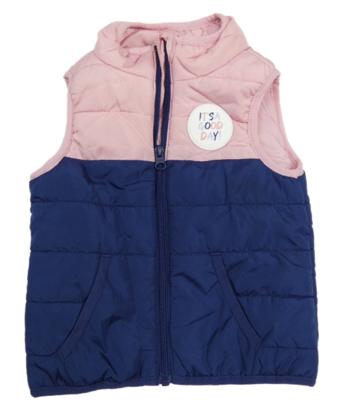 Tmavomodro-světlerůžová prošívaná šusťáková zateplená vesta s nášivkou Lily & Dan