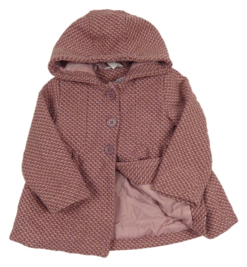 Růžovo-světlerůžový vzorovaný vlněný kabát s kapucí M&Co.