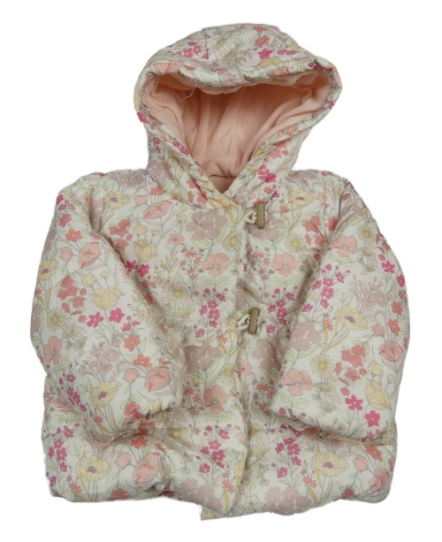 Smetanová prošívaná šusťáková zimní bunda s kytičkami a kapucí Nutmeg
