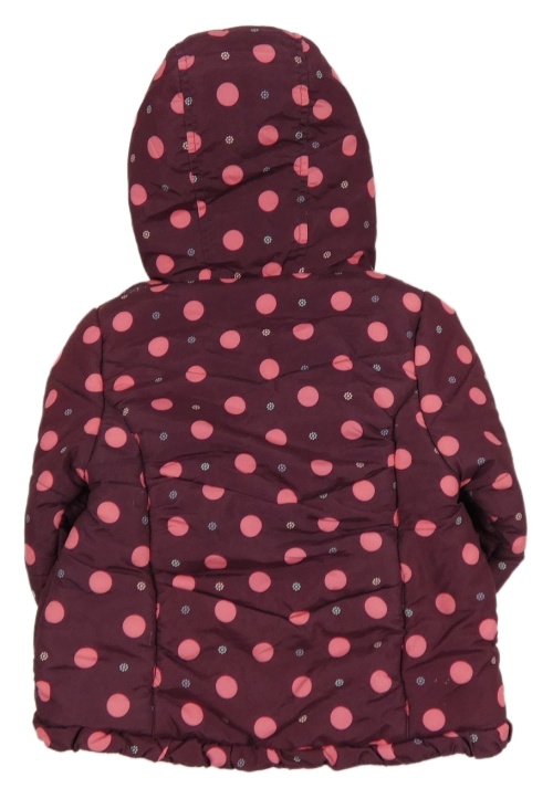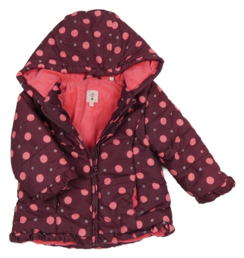 Vínovo-růžová puntíkatá šusťáková zimní bunda s kapucí