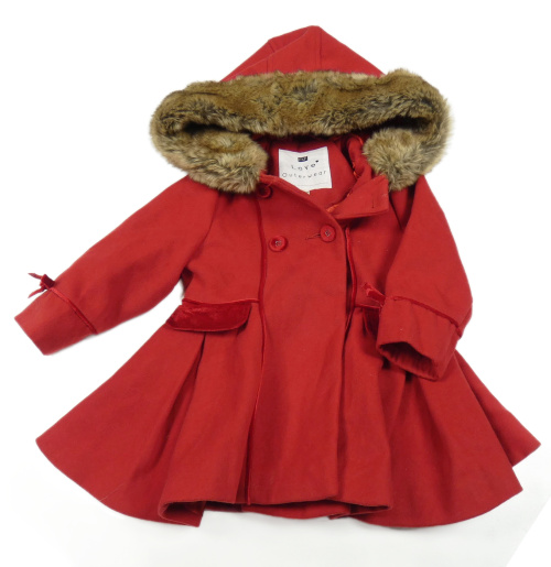 Červený flaušový podšitý kabát s kapucí s kožešinou F&F