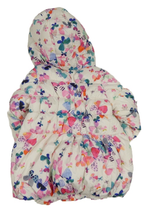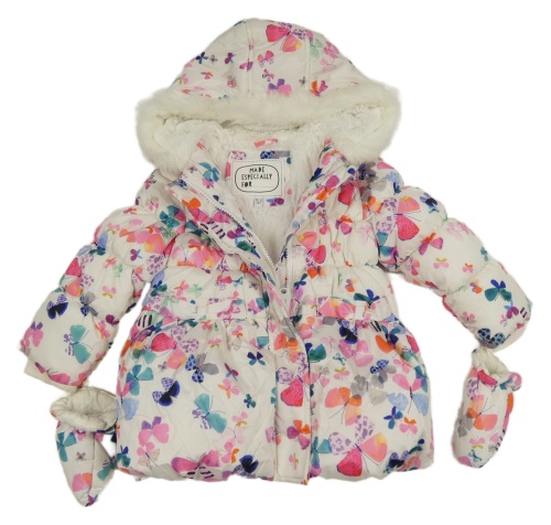 Bílo-růžovo-barevná šusťáková zimní bunda s motýlky a kapucí + rukavice M&S