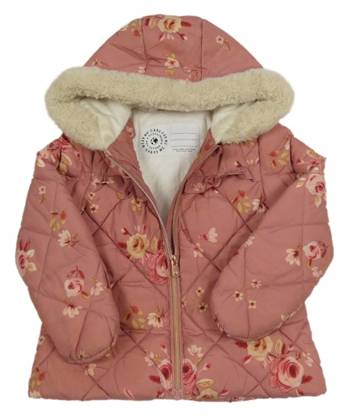 Růžová květinová šusťáková zimní bunda s kapucí F&F
