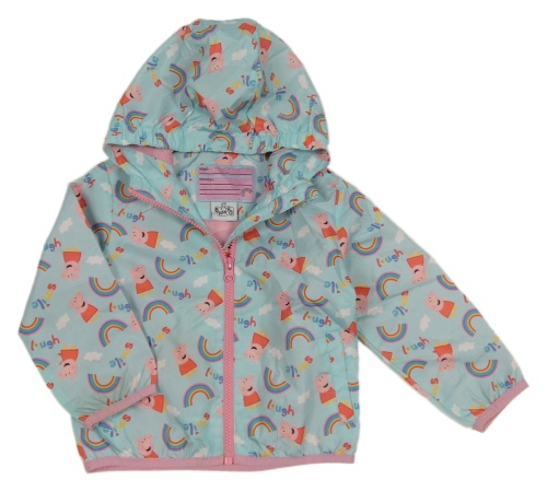 Světlemodrá šusťáková jarní bunda s Peppou a kapucí