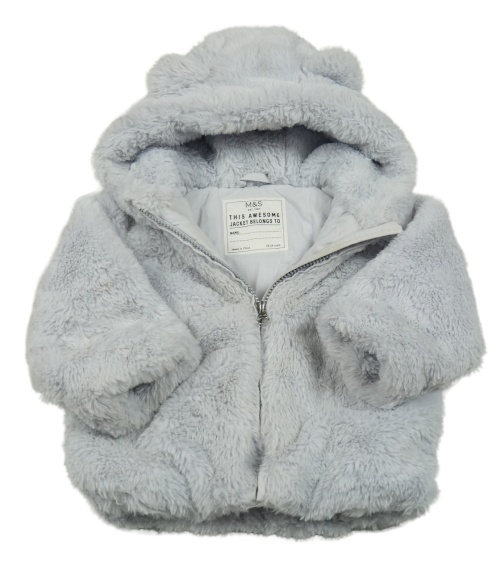 Světlemodrá kožešinová zateplená bunda s kapucí M&S