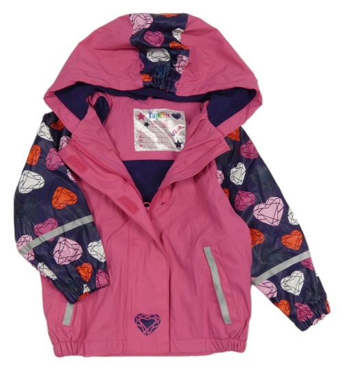 Růžovo-tmavofialová nepromokavá jarní bunda se srdíčky a kapucí Lupilu