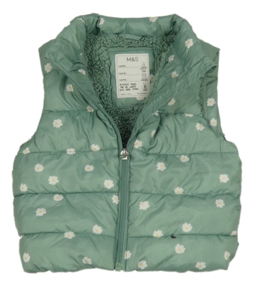 Khaki šusťáková prošívaná zateplená vesta s kytičkami M&S