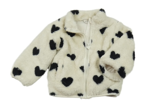 Smetanovo-černá chlupatá podšitá bunda se srdíčky F&F
