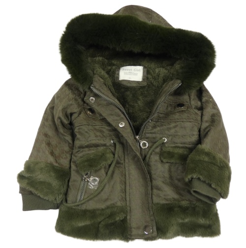 Khaki-hnědá vzorovaná semišová zateplená bunda s kapucí