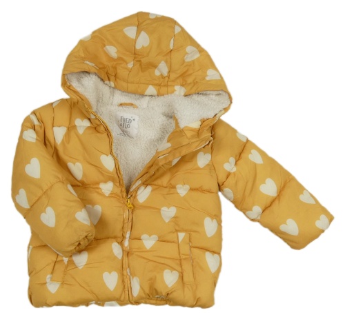 Žlutá šusťáková zimní bunda se srdíčky a kapucí F&F
