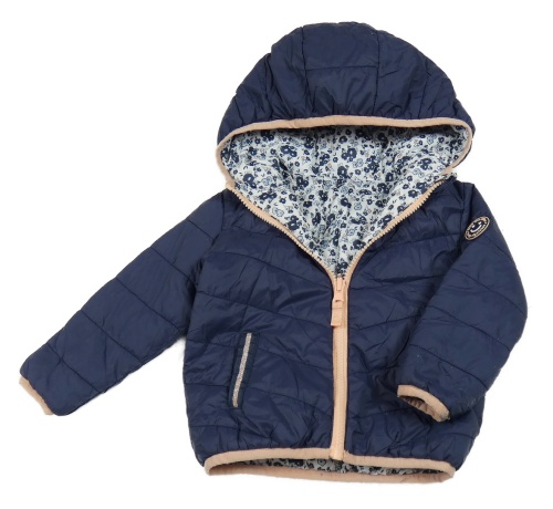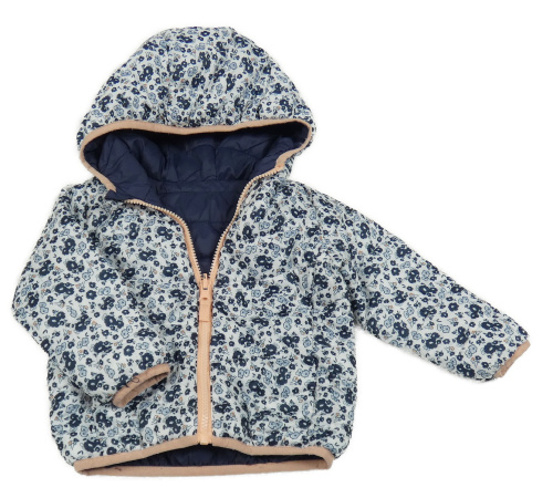 Bílá šusťáková prošívaná zimní bunda s kytičkami a kapucí Vertbaudet