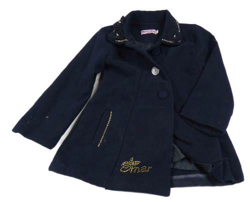 Tmavomodrý flaušový jarní kabát s kamínky a hroty