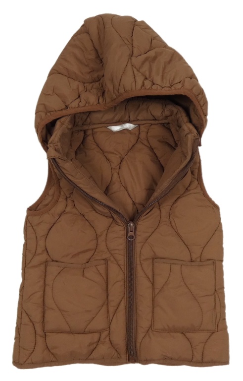 Hnědá prošívaná šusťáková zateplená vesta s odepínací kapucí Smile