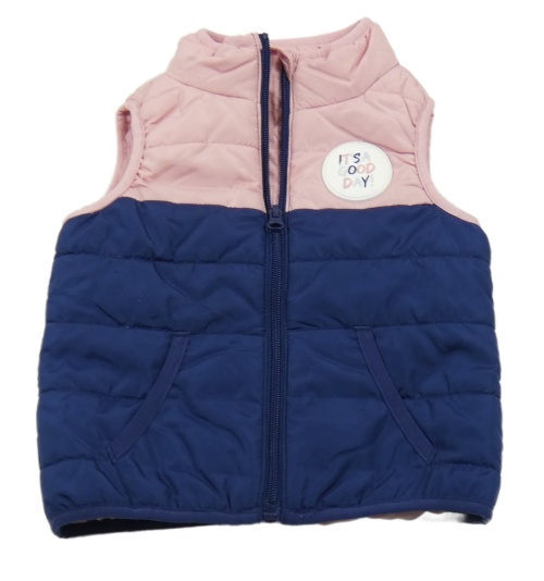 Tmavomodro-růžová šusťáková zateplená vesta s nášivkou Lily & Dan