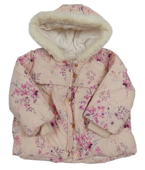 Světlerůžová šusťáková květovaná zimní bunda s kapucí Next