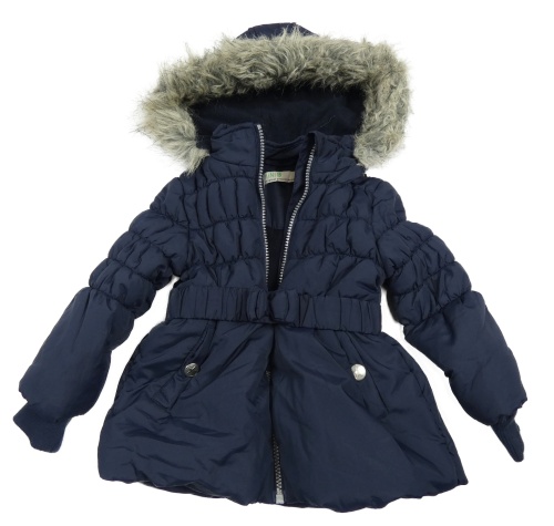 Tmavomodrý šusťákový zimní kabát s prošíváním a kapucí s kožešinou Bhs