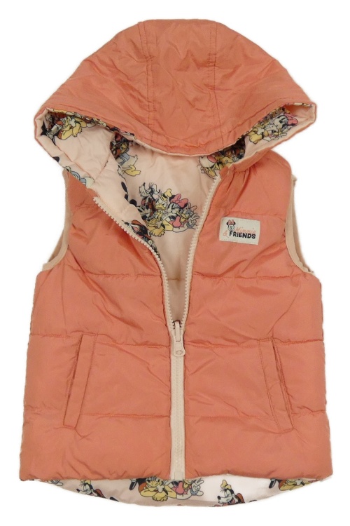 Růžová šusťáková zateplená vesta s Minnie s přáteli a kapucí Primark