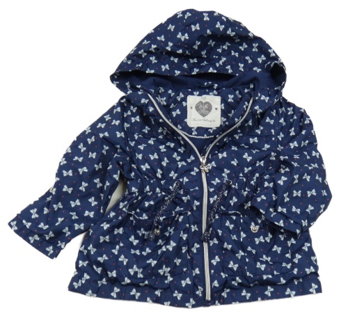 Tmavomodrá puntíkatá šusťáková jarní parka s mašličkami a kapucí F&F