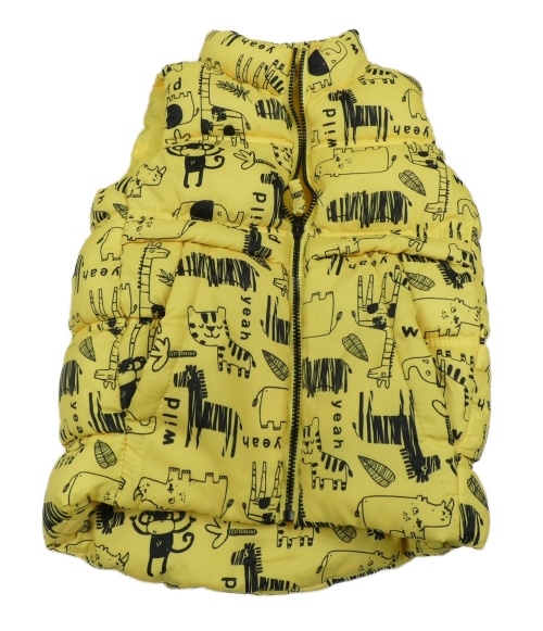 • Žlutá šusťáková prošívaná zateplená vesta se zvířátky So Cute