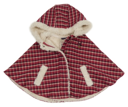 Tmavočerveno-vínovo-růžové kostkované zateplené pončo s kapucí