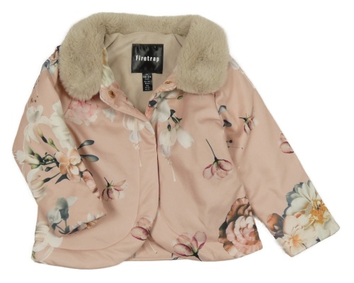 Světlerůžová zateplená květovaná bunda s kožešinovým límečkem Firetrap