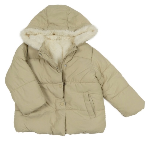 Světlebéžová šusťáková zimní bunda s kapucí