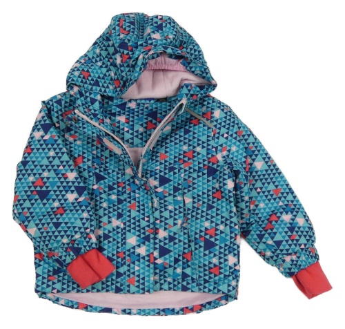 Modro-tmavomodro-červená vzorovaná šusťáková zimní funkční bunda s kapucí Lupilu