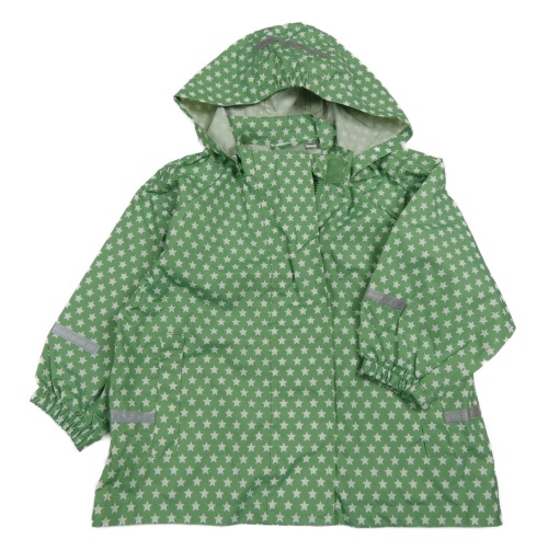 Zelená šusťáková nepromokavá bunda s hvězdičkami a odepínací kapucí impidimpi