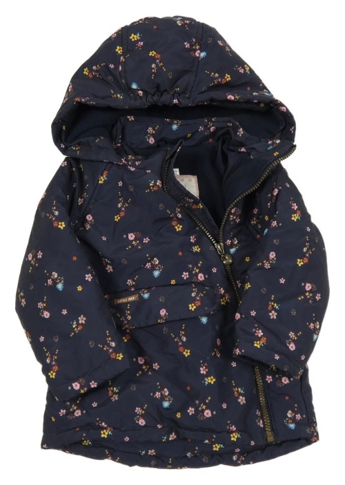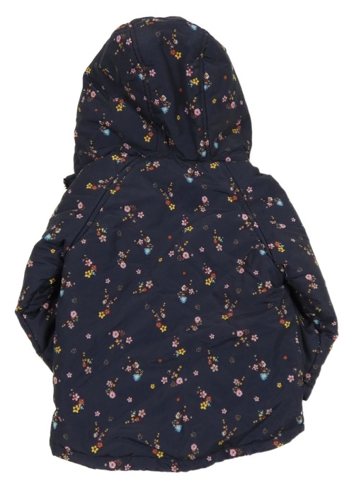 Tmavomodrá květinová šusťáková zimní bunda s kapucí Topomini