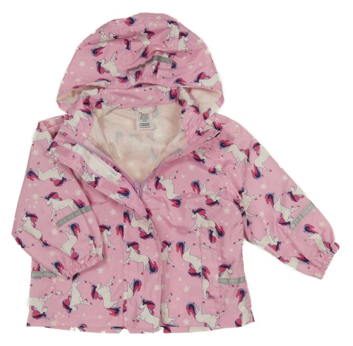 Světlerůžová šusťáková bunda s jednorožci a kapucí Pocopiano