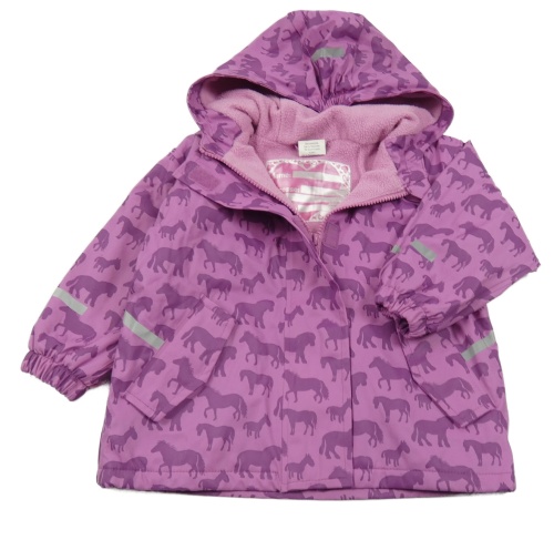 Levandulová nepromokavá lehce zateplená bunda s koňmi a kapucí Papagino