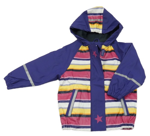 Fialovo-barevná nepromokavá lehce zateplená bunda s pruhy a kapucí Lupilu