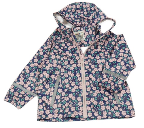 Tmavomodro-růžová květovaná voděodolná jarní bunda s kapucí Kuniboo
