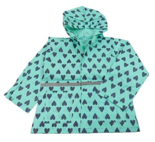 Tyrkysovo-tmavomodrá pláštěnka se srdíčky a kapucí