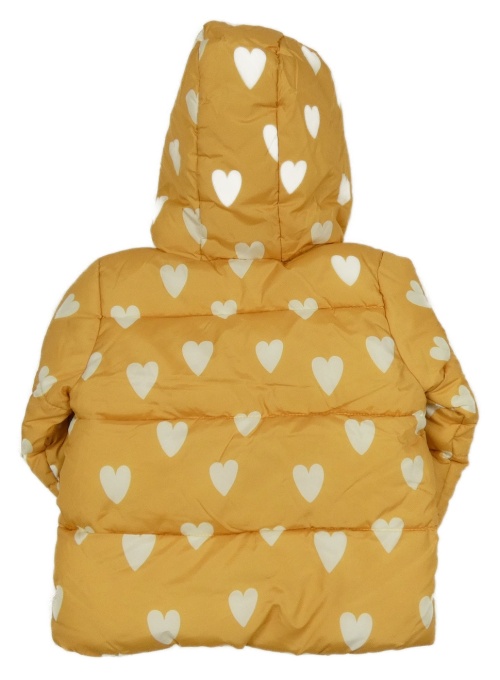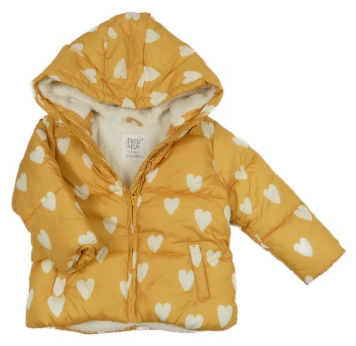 Žlutá šusťáková zimní bunda se srdíčky a kapucí F&F
