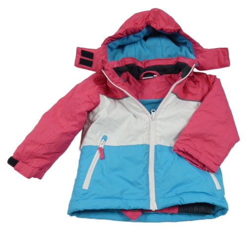 Neonově růžovo-bílo-modrá šusťáková lyžařská bunda s kapucí Papagino