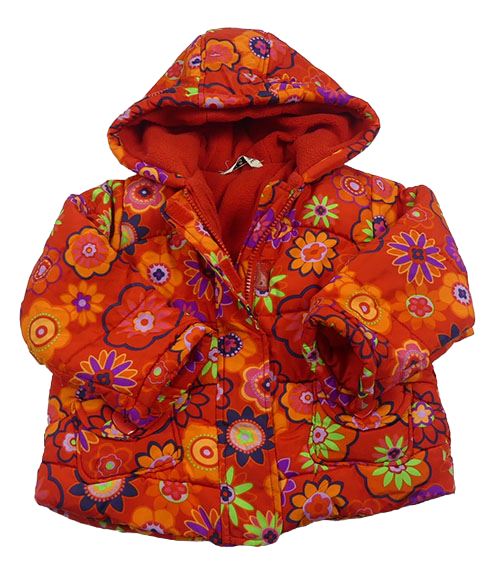 Červená květovaná šusťáková zimní bunda s kapucí George