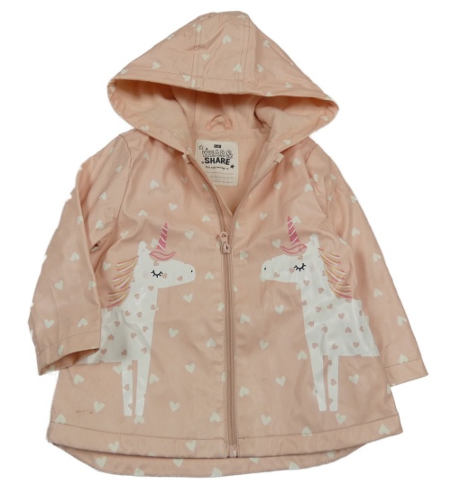 Světlerůžová voděodolná lehce zateplená bunda s jednorožci a kapucí F&F