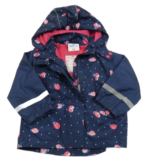 Tmavomodrá šusťáková jarní bunda s beruškami a kapucí Topomini