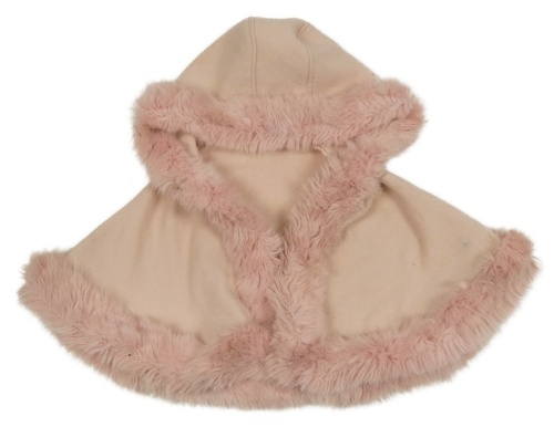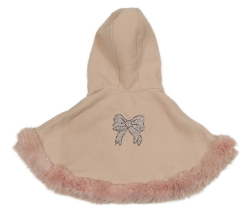 Světlerůžové flaušové pončo s kožešinou a kapucí